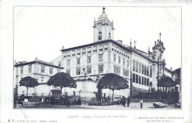 Fotografia obtida por Domingos Alvão na Rua das Flores, no Porto (no sentido da actual estação de São Bento). Ao fundo da rua é ainda visível o já demolido Mosteiro de São Bento de Avé Maria, que podemos contemplar em toda a sua grandiosidade, na imagem de baixo.